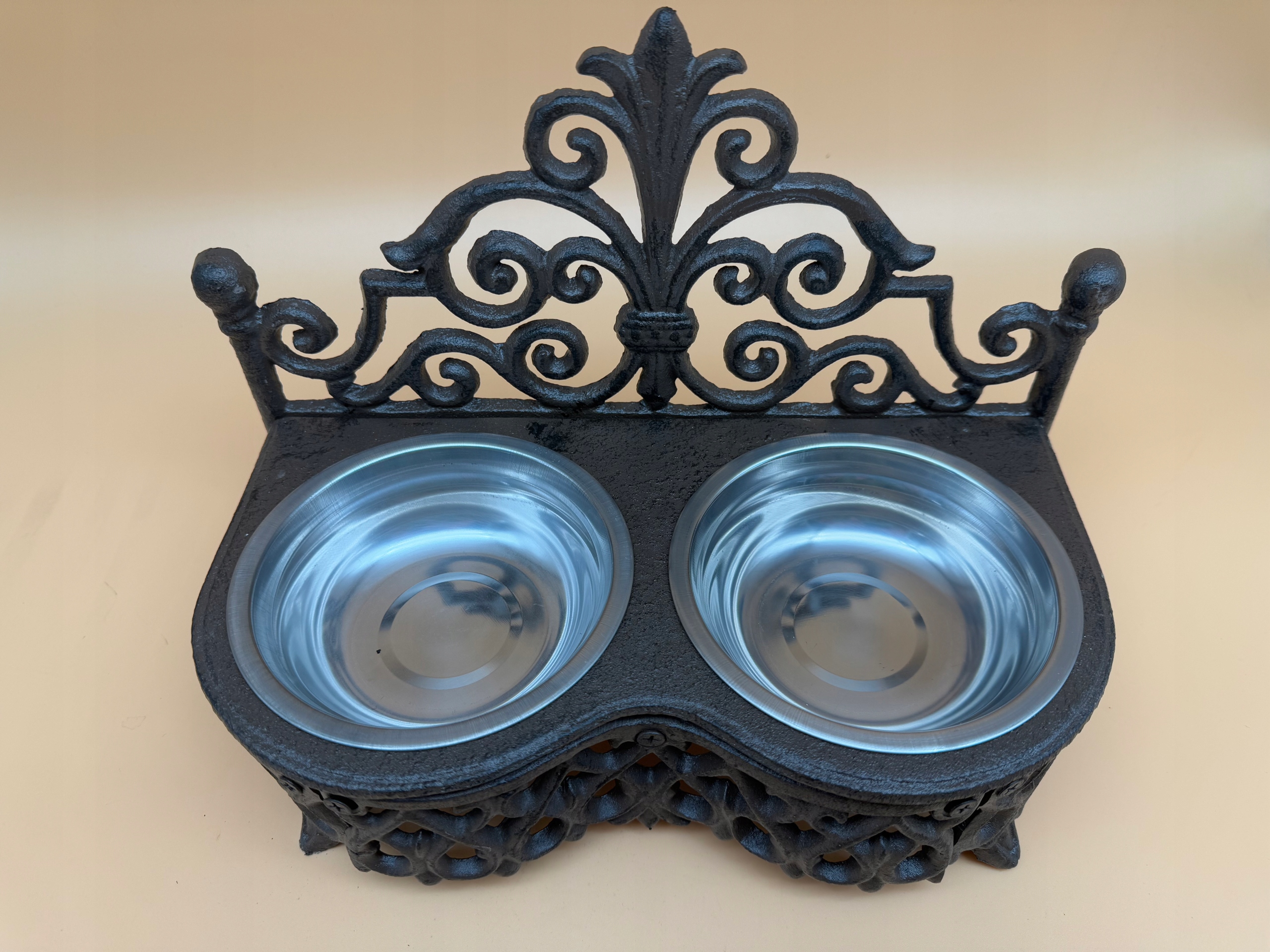 Миска для собаки або кішка красива відкрита робота з чавунною з короною