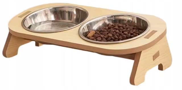 ДЕРЕВ'ЯНА ПОДВІЙНА МИСКА ДЛЯ СОБАКИ І КІШКИ НАБІР З ДВОХ МИСОК 2x200 мл