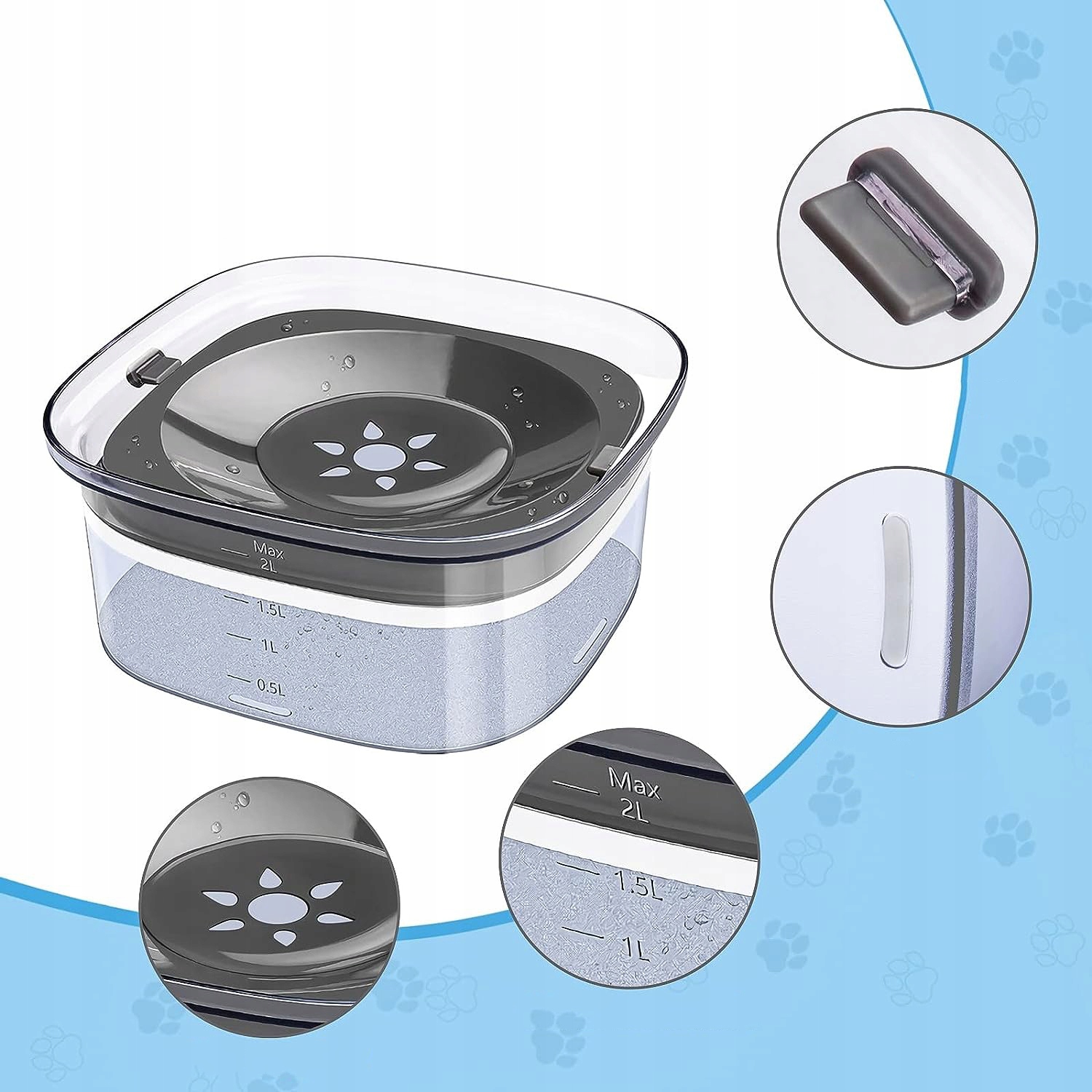 - - Завдяки великій ємності 2 літри немає необхідності часто доливати воду, тому ваш вихованець може пити достатньо води.