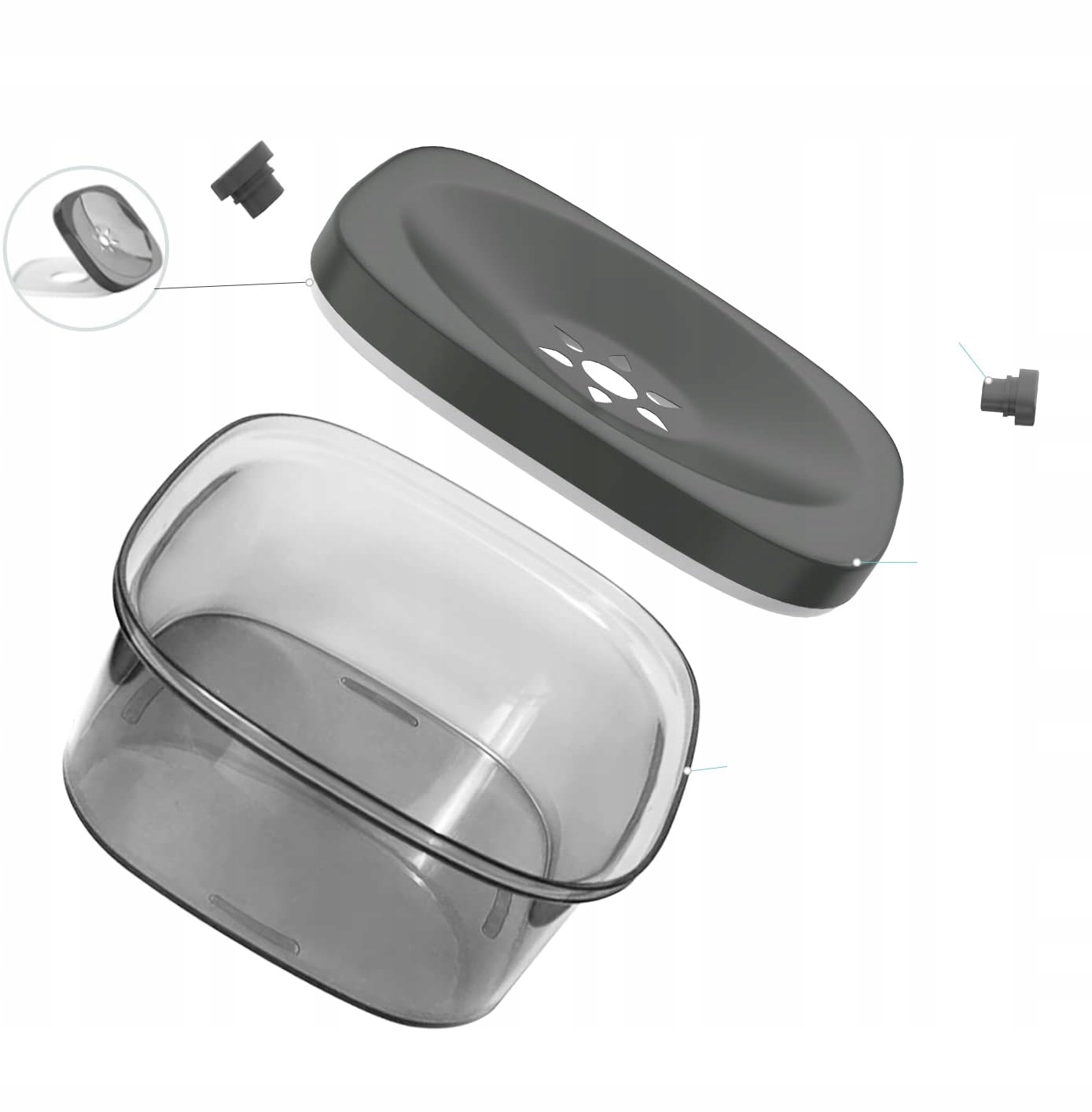 - - Видимий прозорий піддон для води допомагає спостерігати за якістю води та вчасно замінювати воду. Лінія рівня води дозволяє чітко спостерігати за забором води.