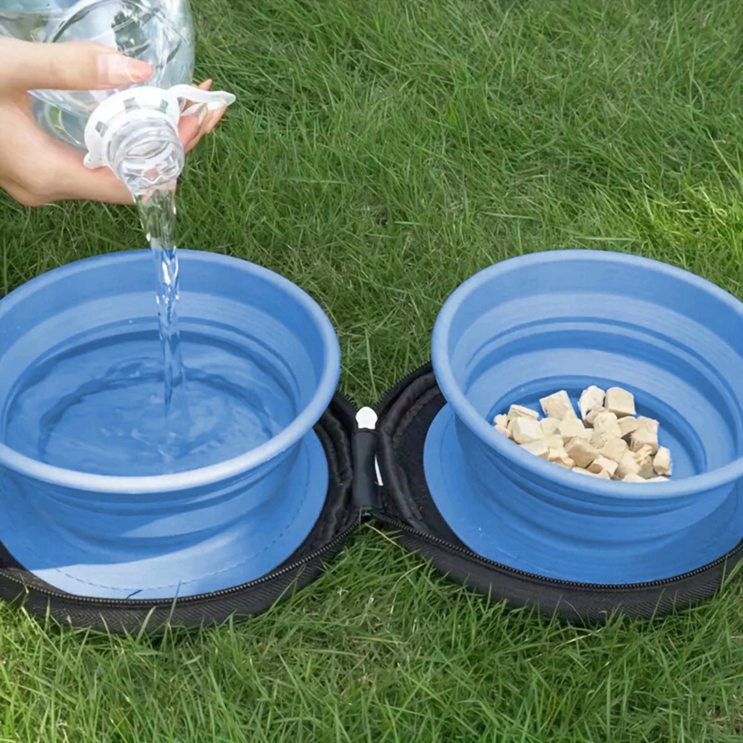 МИСКА ДВІЙНА ДЛЯ СОБАК, СКЛАДНА СИЛІКОНОВА, ТУРИСТИЧНА ПОДОРОЖКА 2х0,7л