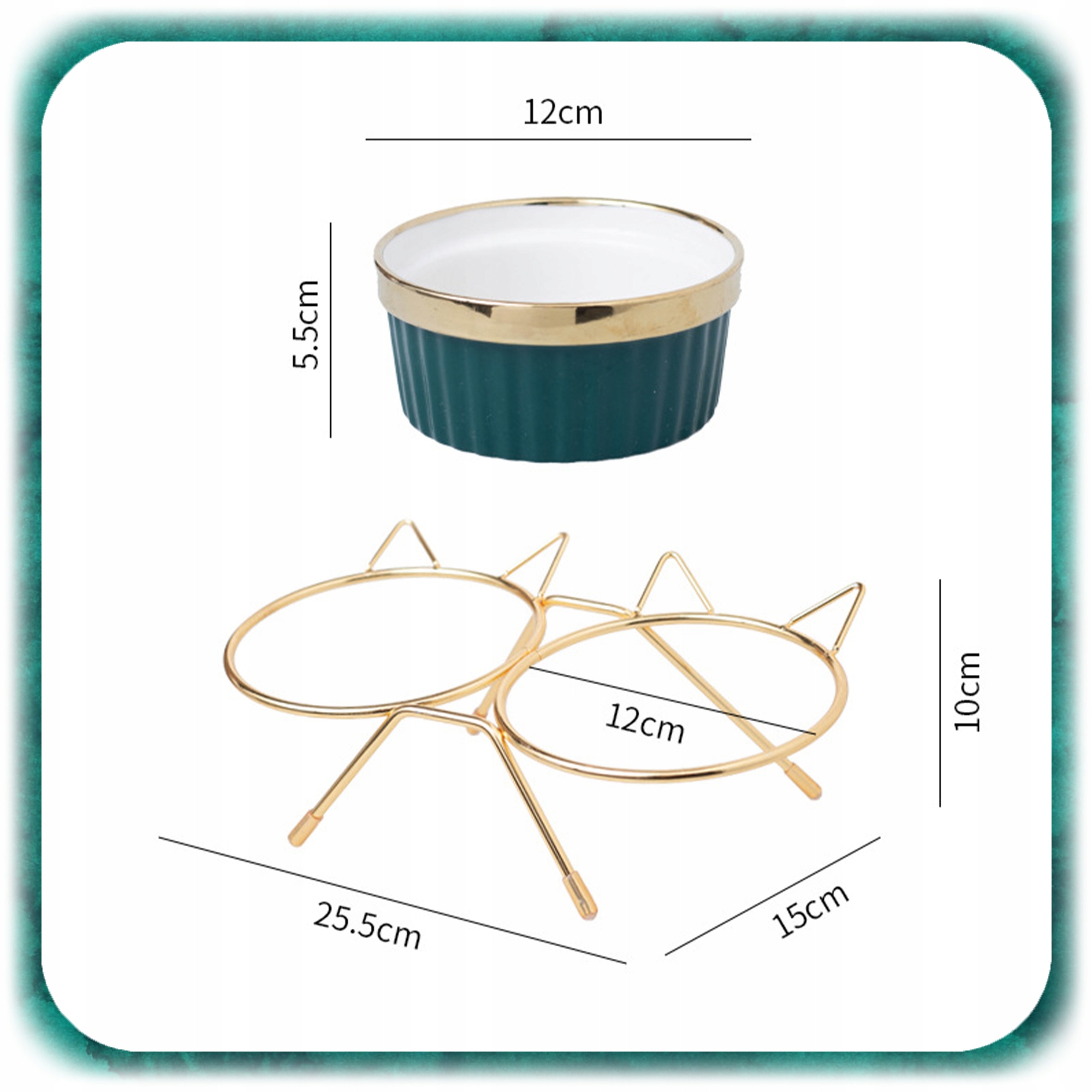 ПОДВІЙНА КЕРАМІЧНА МИСКА ДЛЯ СОБАК ТА КОТІВ НА ПІДСТАВЦІ ГЛАМУР - Комфорт і стиль для вашого вихованця!