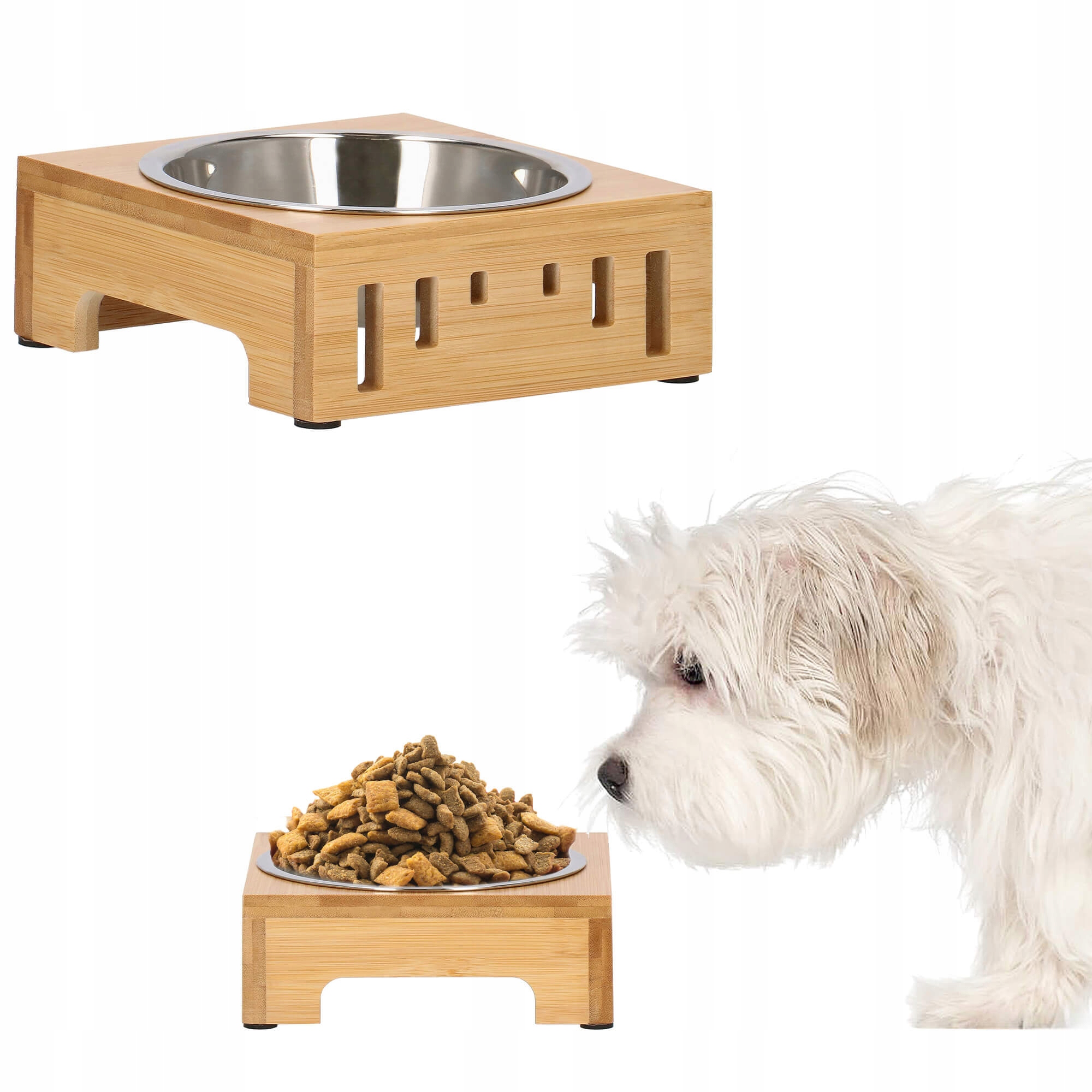 МИСКА МЕТАЛЕВА ДЛЯ КОТА СОБАКИ З ПІДСТАВКОЮ ИЗ БАМБУКУ ПРОТИКЛИЗКЕННЯ