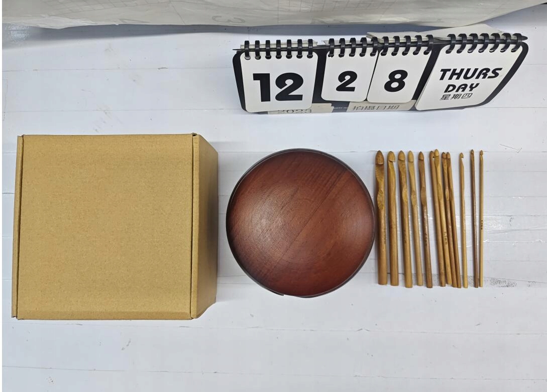 1 дерев'яна миска для пряжі з кришкою, 12 гачків різних розмірів. Портативна миска для в’язання гачком дозволяє легко в’язати будь-де.