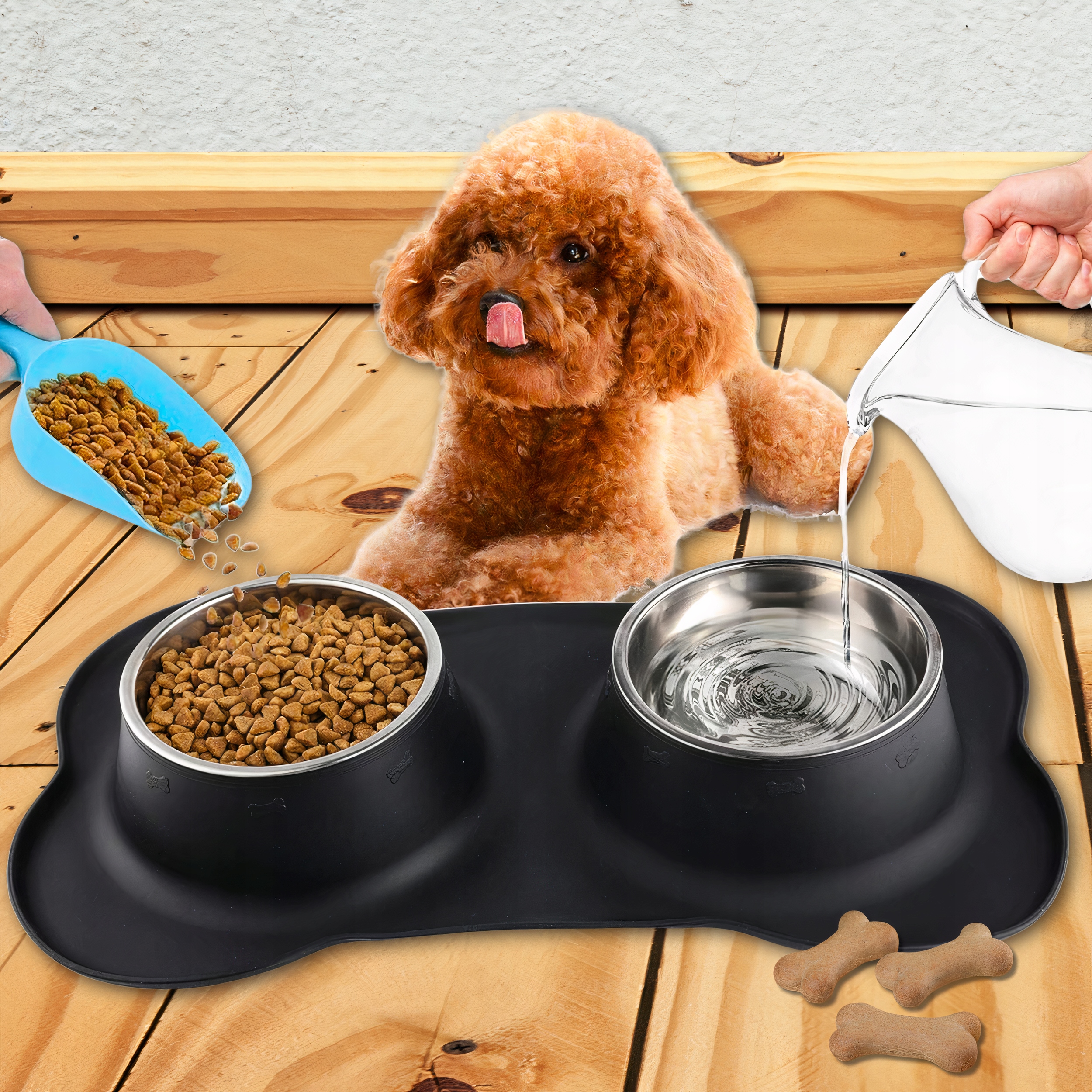 МИСКА ПОДВІЙНА ДЛЯ СОБАКИ І КІШКИ, ПРОТИКЛИЗКИЙ + ПОДУШКА ДЛЯ МИСКІ 2х450 мл