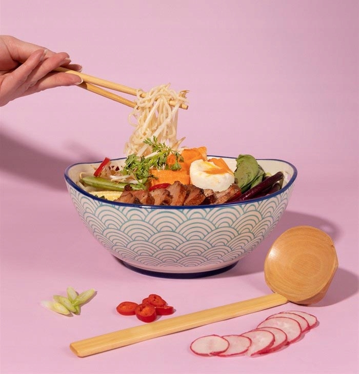 Якщо ви любите східні страви, напр. рамен, вам сподобається цей набір. Він включає керамічну миску об'ємом 800 мл, пару паличок для їжі та допоміжну ложку.