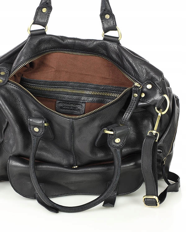 Цей місткий плечовий мішок від Marco Mazzini є ідеальним рішенням для жінок, які цінують як функціональність, так і завжди модний старовинний стиль. Виконання найвищої якості від натуральної шкіри забезпечує розкішний вигляд, а його чорний колір додає витонченість і робить його підходить до кожної стилізації, як щодня, так і більш офіційним.