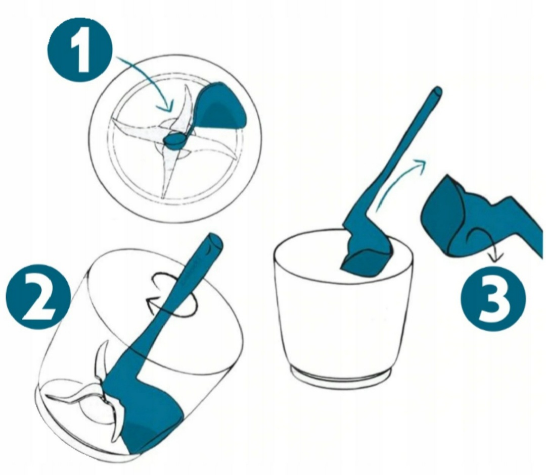 ✔️ Дуже простий у використанні. Просто покладіть його на ножі та покрутіть, щоб зібрати всю суміш, яка зібралася на дні глека блендера. Лопатку можна мити в посудомийній машині.