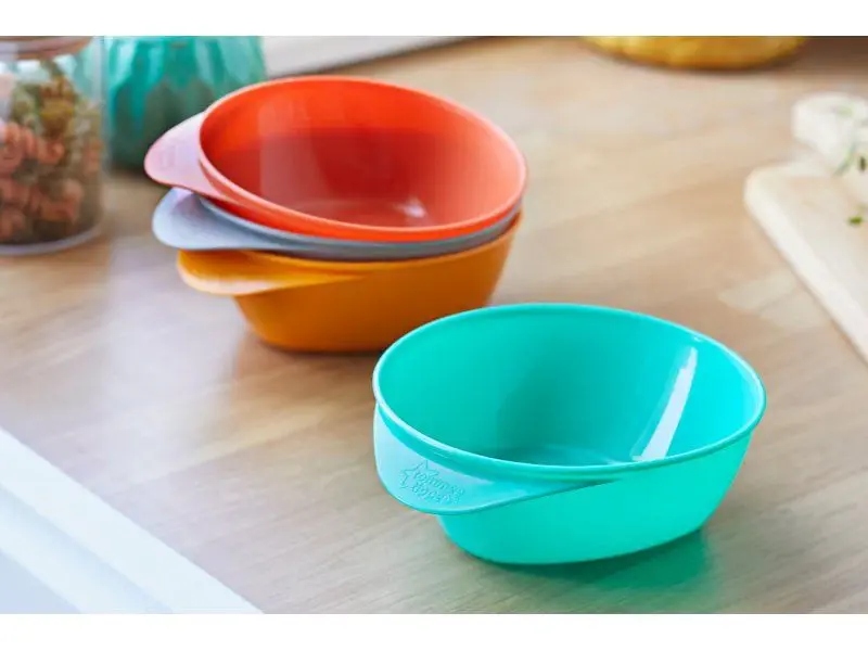 У надзвичайно великому наборі мисок міститься все необхідне під час їжі. Чашки мають унікальну трикутну основу, яка полегшує зачерпування їжі. Підходить для використання в мікрохвильовій печі, посудомийній машині та морозильній камері. Вони полегшать життя і матері, і дитині!