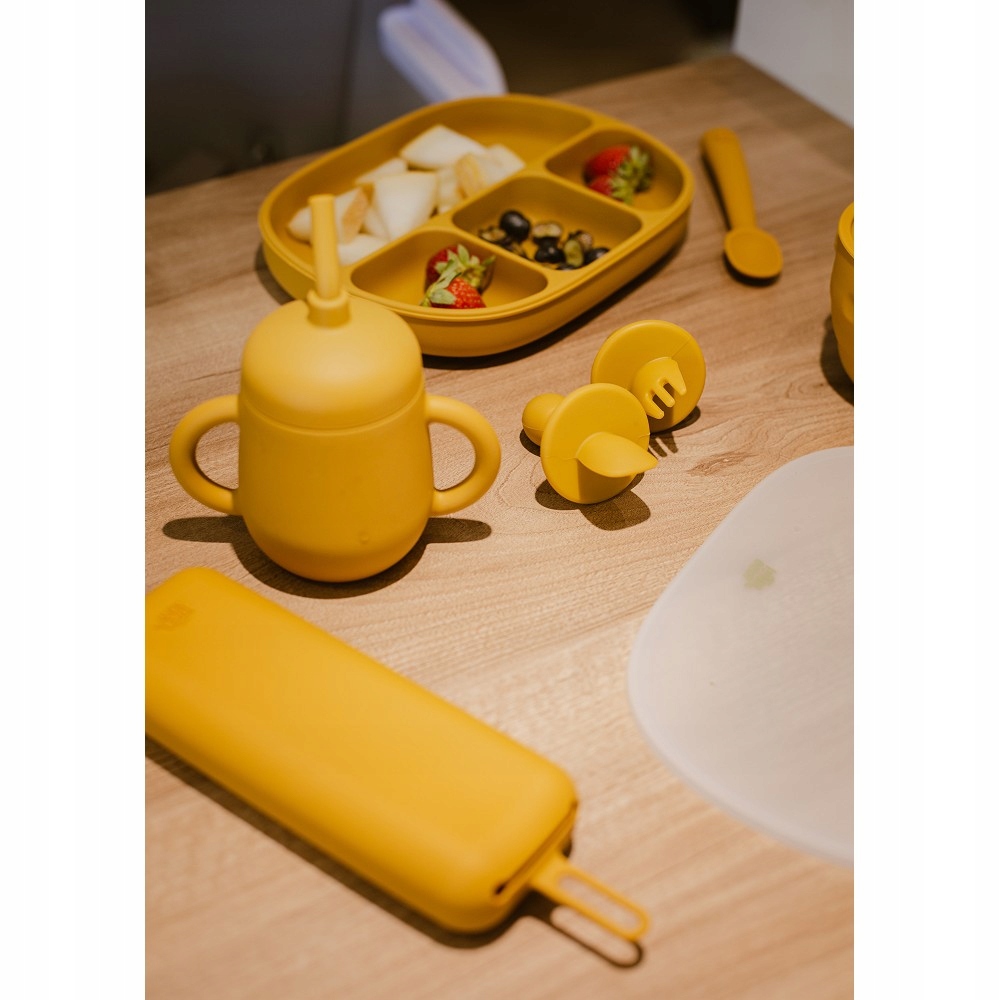 Миска з присоскою + жовта силіконова ложка для навчання їжі