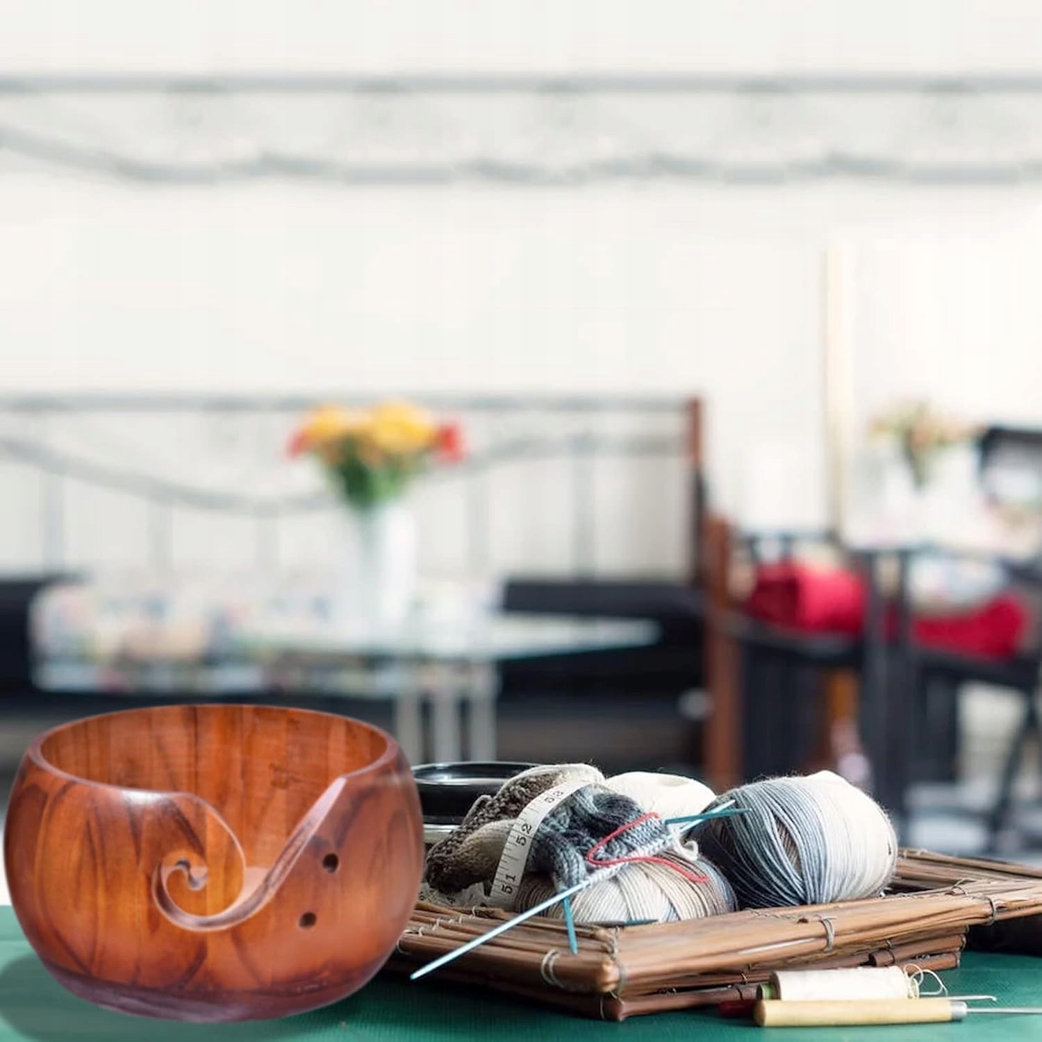 Візуальний стиль: миска має фігурний візерунок і 2 маленькі отвори збоку, через які ви можете легко протягнути пряжу та ефективно запобігти сплутуванню ниток пряжі під час в’язання; Ця дерев'яна миска з пряжі буде вишуканою та практичною на вашому журнальному або робочому столі; Його також можна використовувати як декоративну вазу, цукорницю або контейнер для рослин.