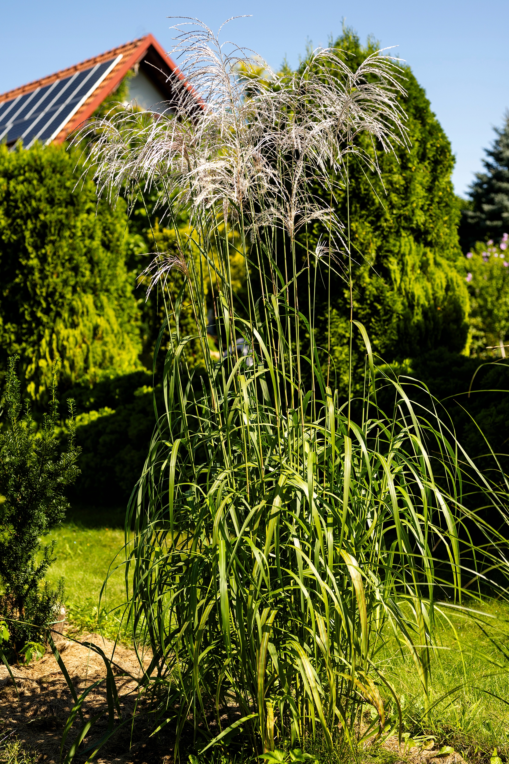 ⭐ Унікальні суцвіття – Міскантус Пам’яті китайський дає красиві, сріблясті, схожі на прапор суцвіття, які додають саду чарівності та привабливий для багатьох видів птахів.