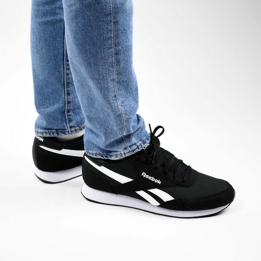 Чоловіче взуття Reebok Royal Classic Jogger 3.0 чорного кольору з білими елементами. Верх цього взуття виготовлений із синтетичної замші з текстильними елементами. М'яка підошва EVA забезпечує хорошу амортизацію. Гумова підошва стійка до стирання. Чоловічі кросівки Reebok Royal Classic Jogger 3.0 створені для щоденного використання.