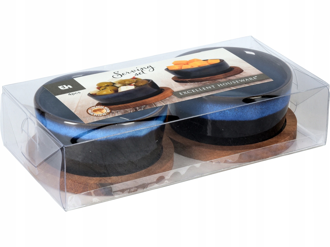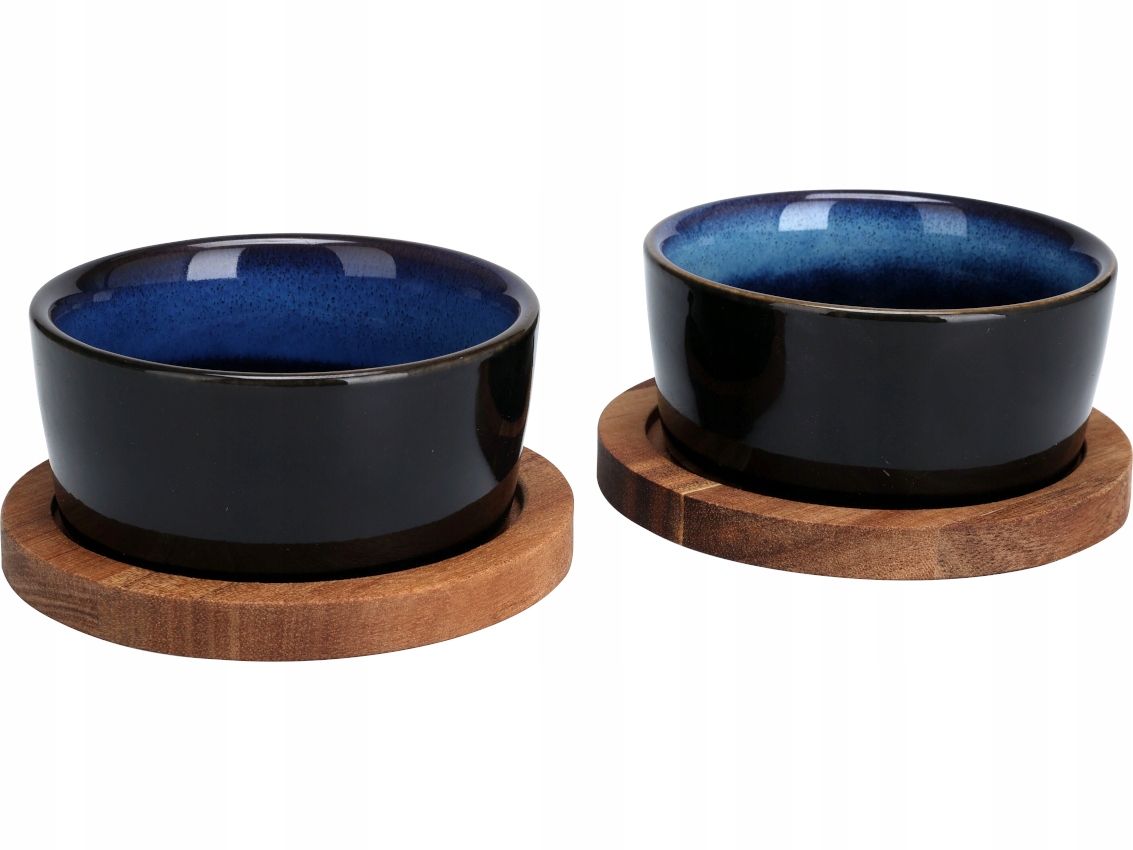 Набір з 2 керамічних мисок на підставках з дерева акації - для подачі оливок, горіхів, закусок і соусів. Також ідеально підходить для солодких міні-десертів.