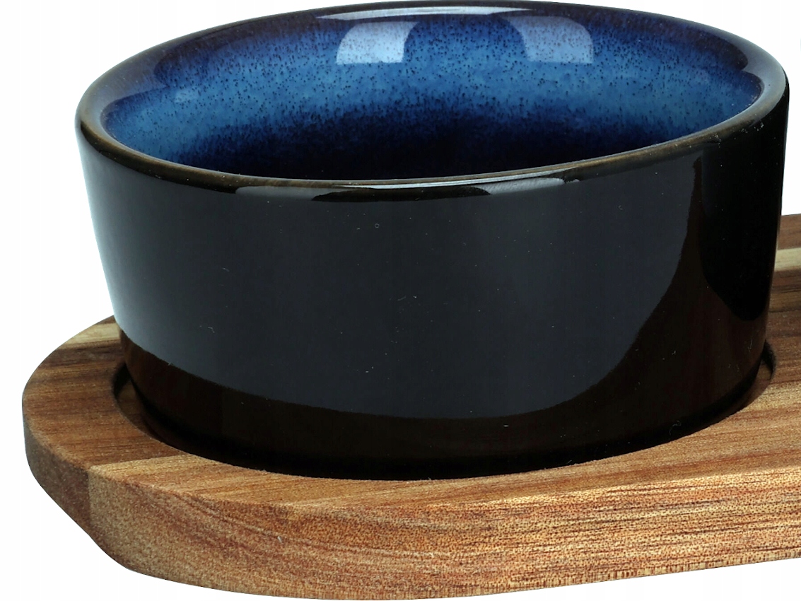 Набір із 3 керамічних мисок на підносі з дерева акації — для подачі оливок, горіхів, закусок і соусів. Також ідеально підходить для солодких міні-десертів.