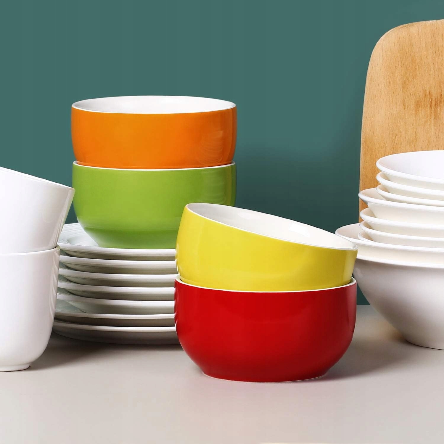 - Ідеальний розмір - набір із 4 глибоких порцелянових мисок різних кольорів: жовтого, оранжевого, червоного та зеленого. Яскраві кольори, які покращують ваш настрій під час їжі.