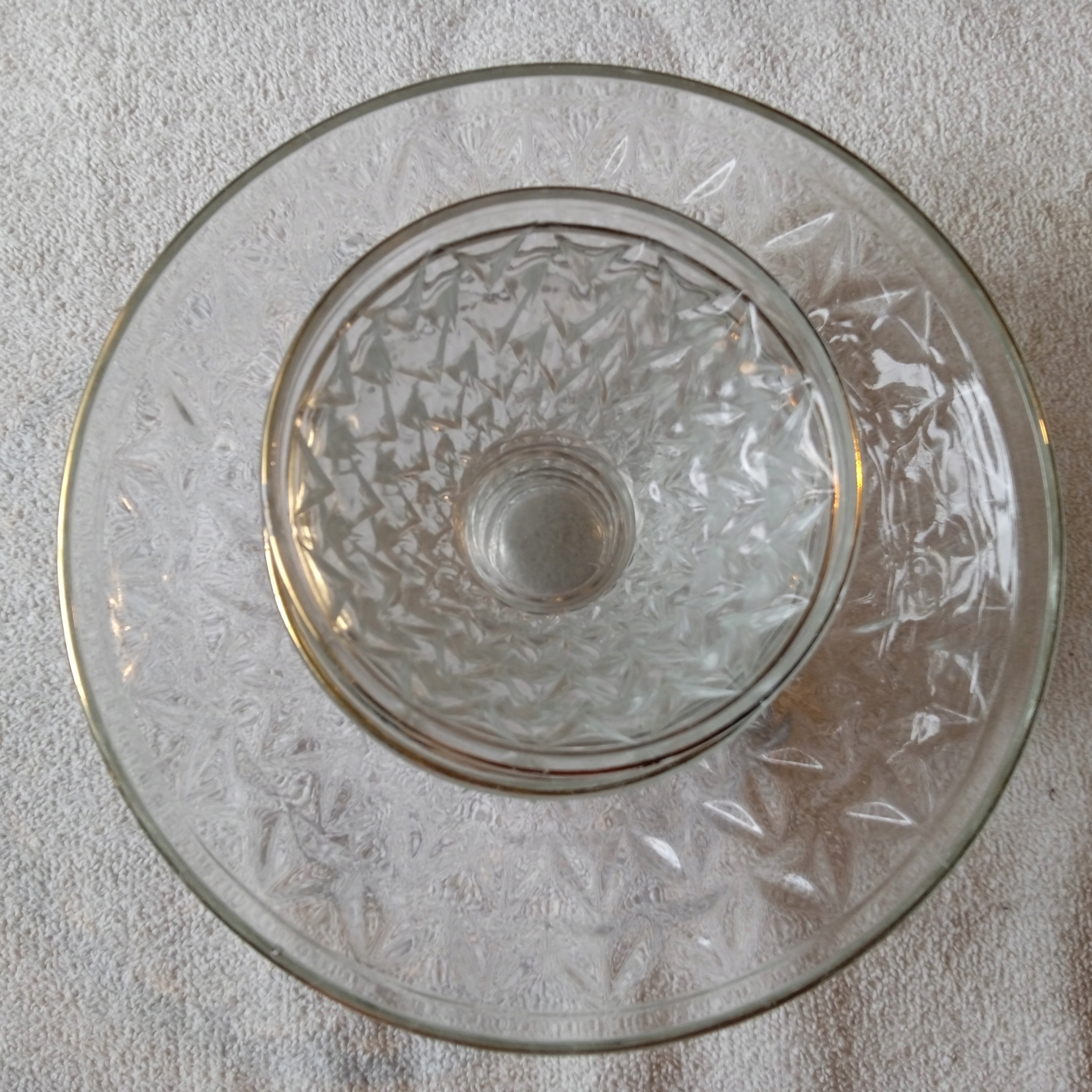 Продам набір мисок 1+5 виробництва HSG Ząbkowice, візерунок "Трикутники", дизайн Богдана Купчика. Чаші з прозорого пресованого скла, позолочені обідки, що є рідкістю для цієї моделі. Висота великої чаші 8,5 см. Діаметр 23,2 см. Діаметр дна 8,4 см. Висота маленьких чашок 6,7 см. , діаметр 12,2 см. В доброму стані. Незначні експлуатаційні подряпини, неглибокі та не дуже помітні. Дрібні бульбашки повітря в масі. Ціна вказана за весь комплект.