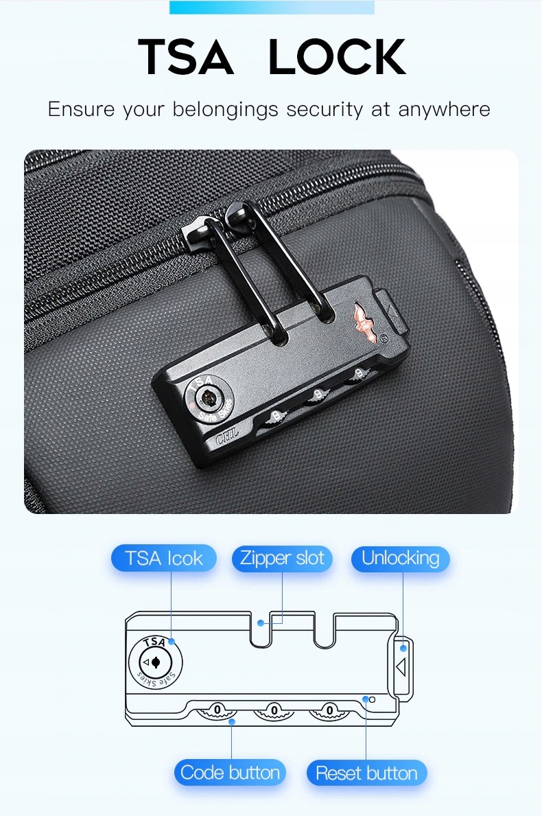 Основне відділення можна захищено від відкриття за допомогою навісного замка з тризначним кодом.