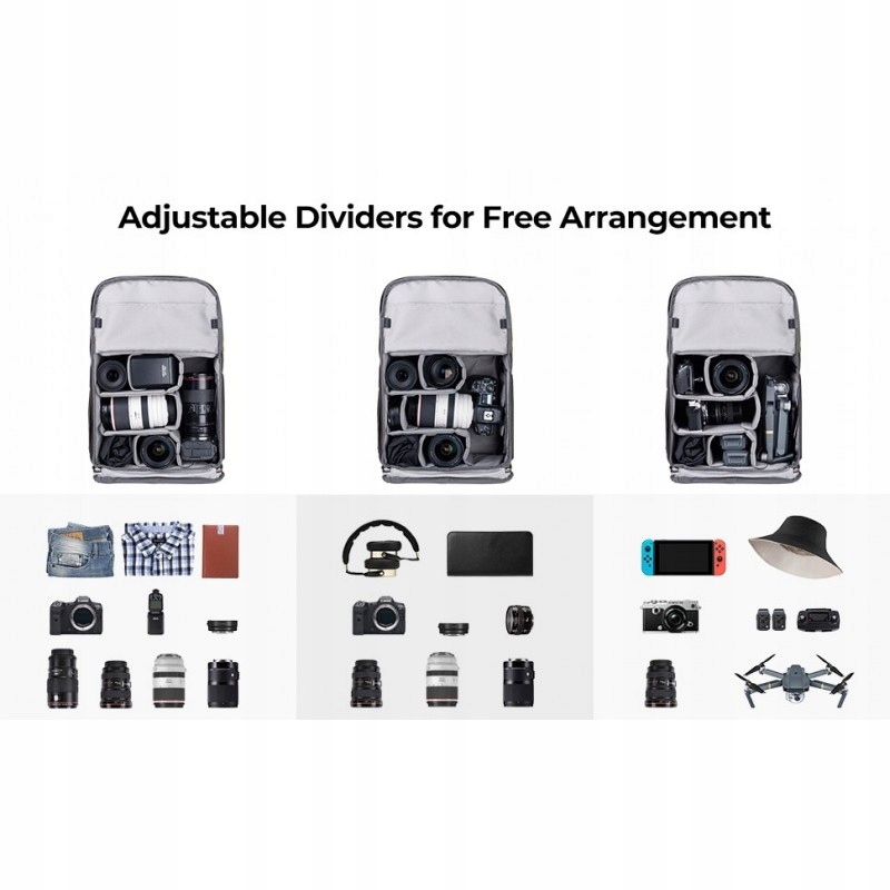 Рюкзак K&F Concept дозволяє безпечно транспортувати корпус камери, два-три об'єктиви, спалах або додаткові аксесуари - фільтри, запасні батареї або пам'ять карти. p>