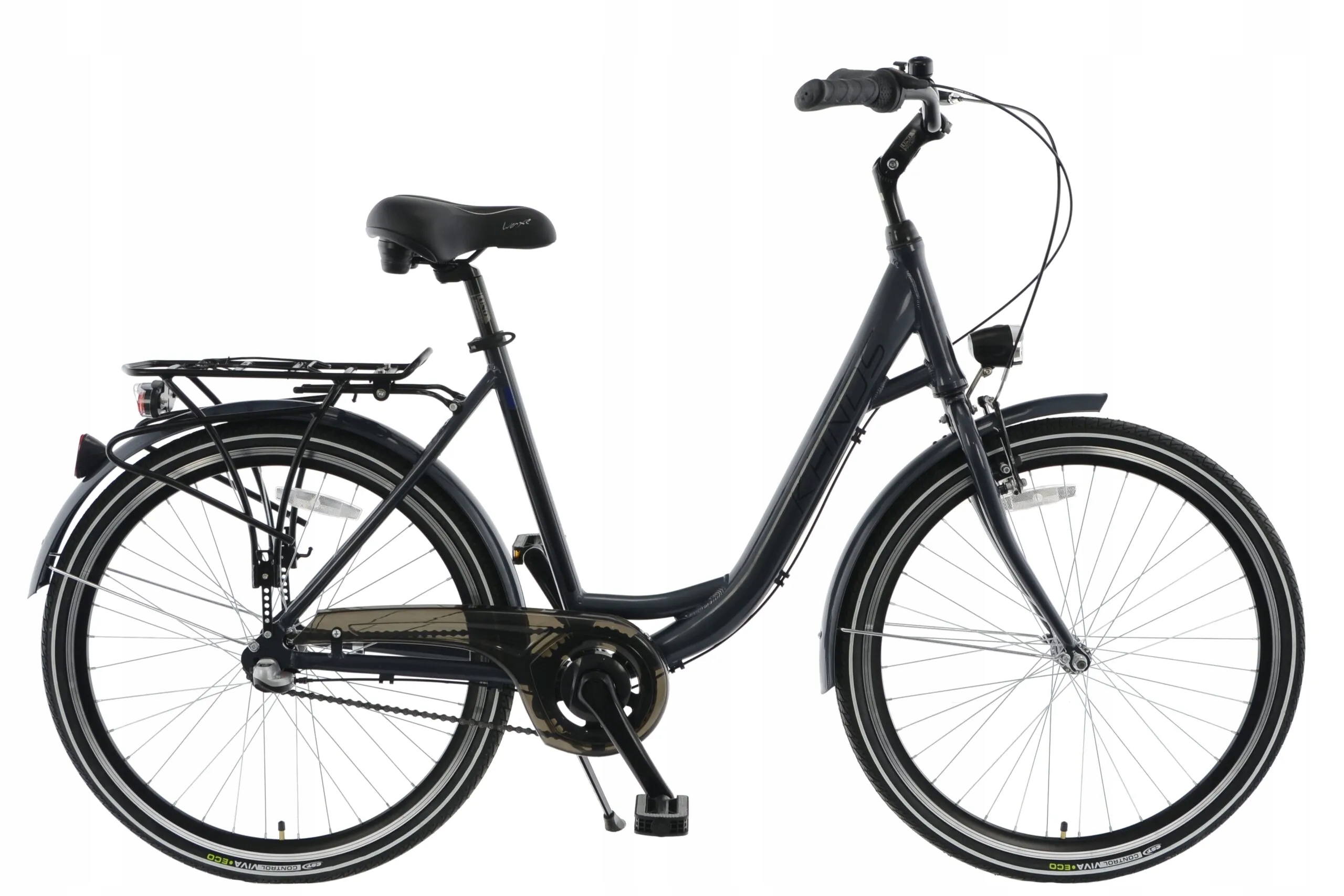 Це твердий польський велосипед з алюмінієвою рамою на колесах 28". Конструкція рами та регульована опора керма забезпечують високий комфорт їзди у вертикальному положенні. Ця модель має безвідмовну 3-швидкісну втулку Shimano Nexus.