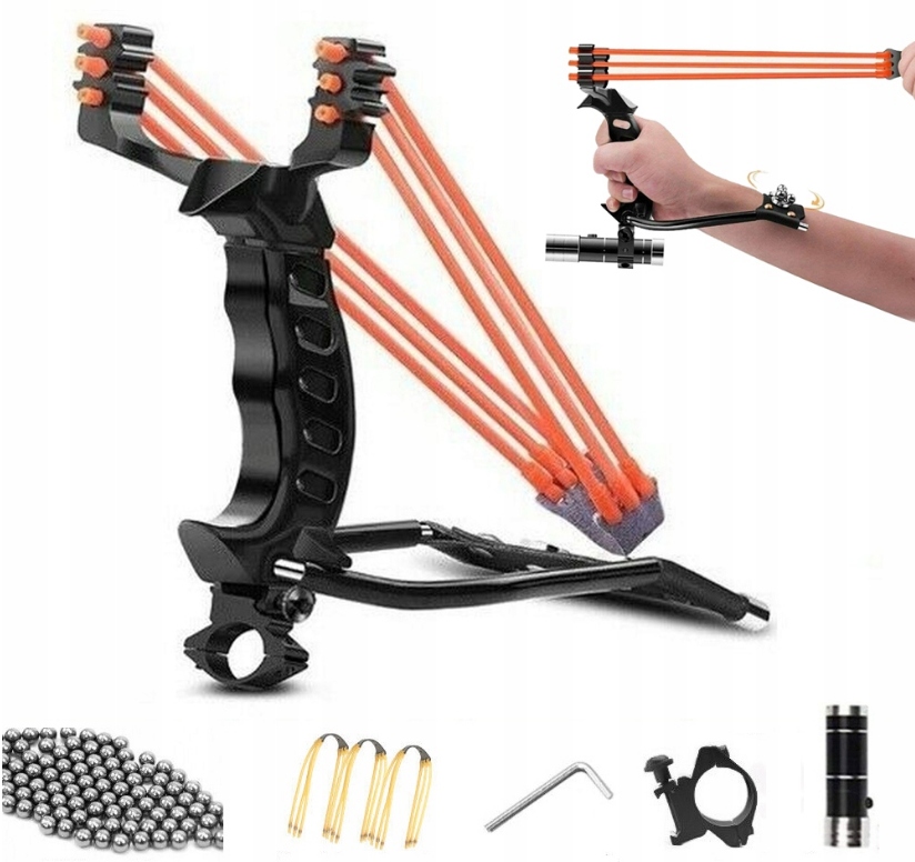 - Наша професійна мисливська рогатка з дужковою конструкцією та потрійними міцними гумками.