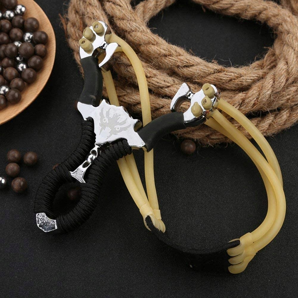 - Ця катапульта для рогатки складається з 3 гумових стрічок, більше потужності, більша відстань для пострілу, точніша й міцніша, найкраща рогатка для полювання.