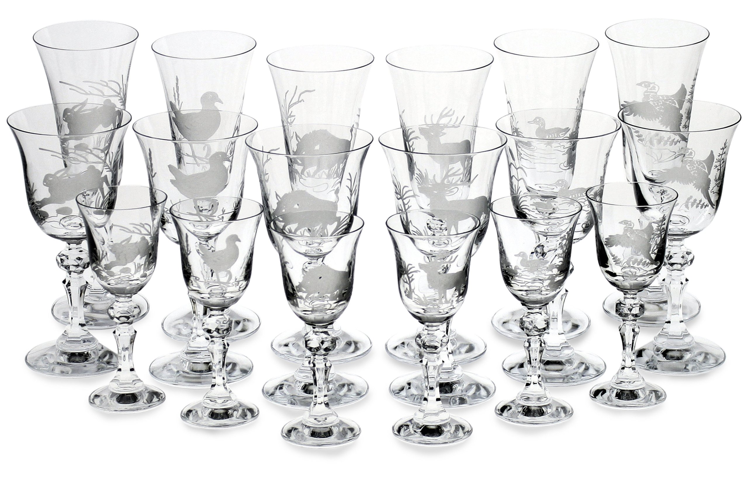 Набір келихів для горілки, шампанського та вина з гравіюванням, прикрашених мисливськими мотивами