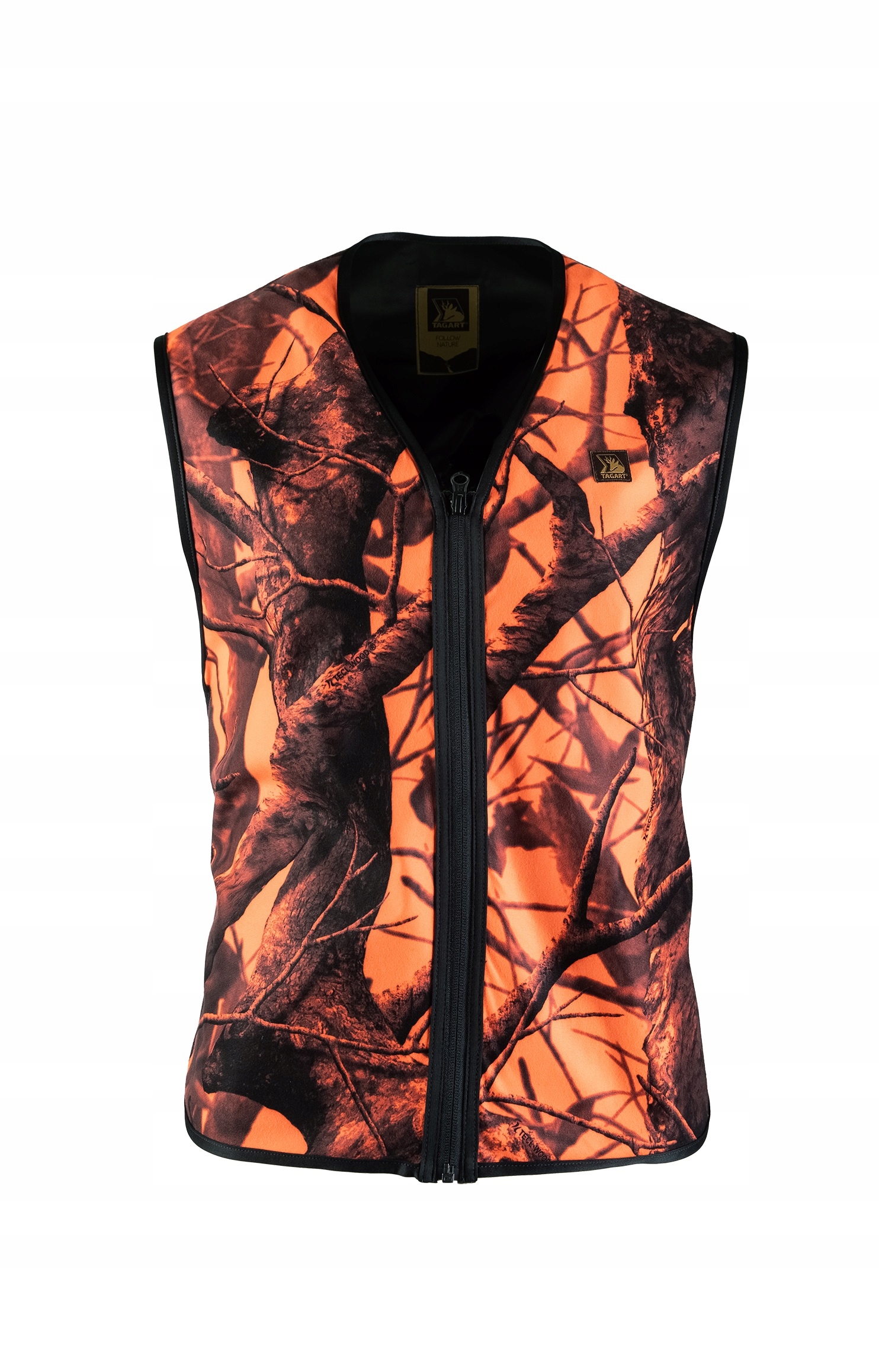 Жилет з мембраною TPU 10 000 ідеальний для колективного полювання. Жилет має дуже оригінальні кольори - оранжево-коричневий камуфляж, що значно збільшує нашу помітність у лісі. Ця модель випущена в серії Winter Fire разом з курткою і штанами Thunder Thermo, які ви можете знайти тут. Жилет робить користувача помітним на великій відстані незалежно від погодних умов. Крім того, цей набір кольорів невидимий для мисливських тварин, тому ми не привертаємо увагу.