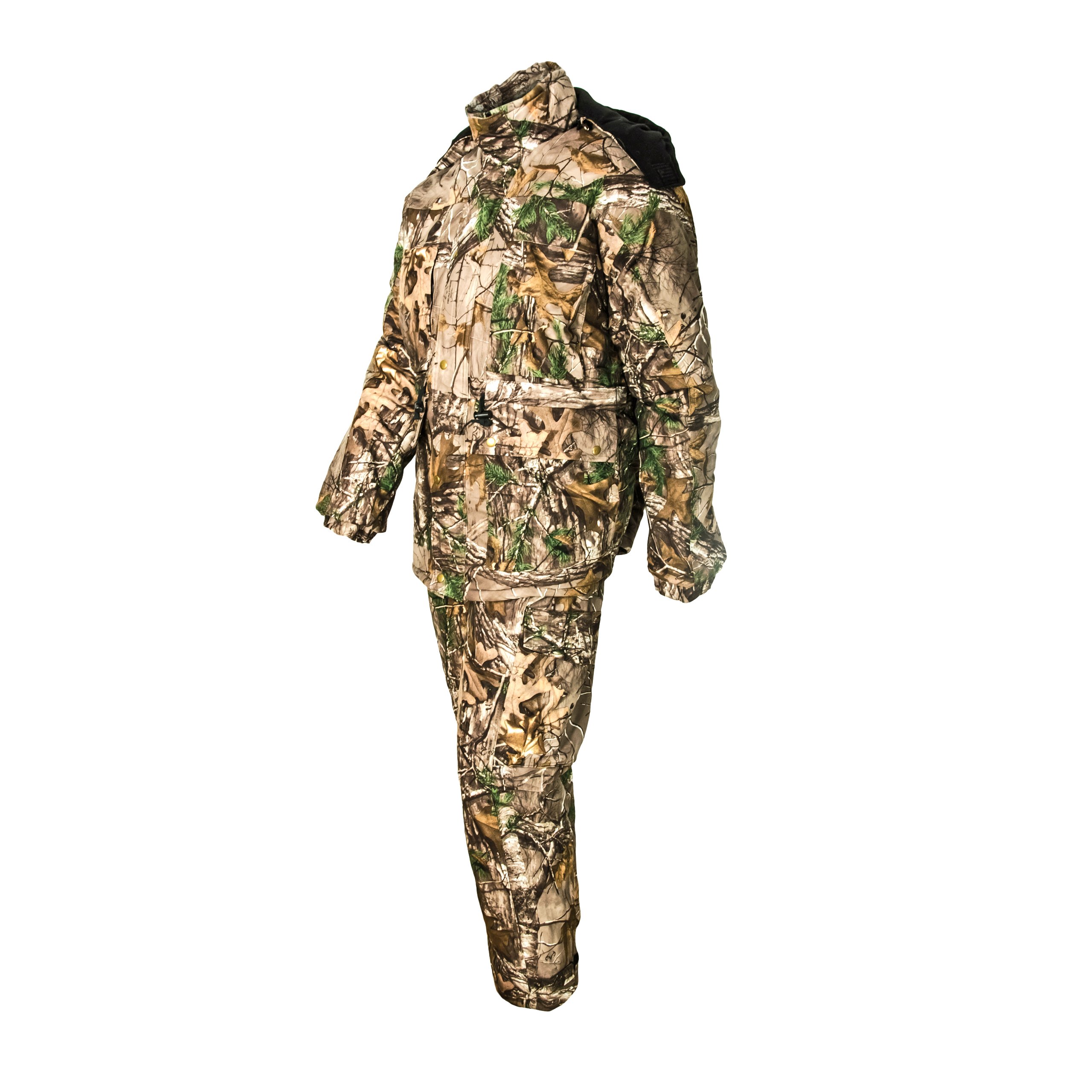 Комплект у справжньому мисливському лісовому камуфляжі, коричневих відтінків.