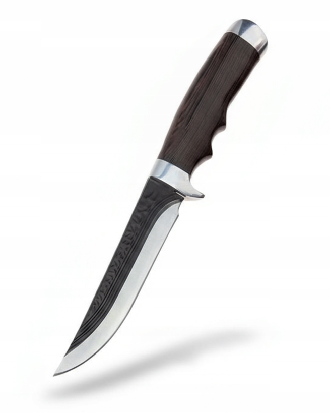 Мисливський ніж із фіксованим лезом із загостреним профілем із нержавіючої сталі 440 забезпечує точність, довговічність і легке заточування. Ергономічна ручка з металу та дерева, захисний кожух і поясна сумка з Cordura роблять його надійним інструментом для полювання, кемпінгу та виживання. Компактна вага 145 г і загальна довжина 250 мм — це чудовий баланс мобільності та функціональності.