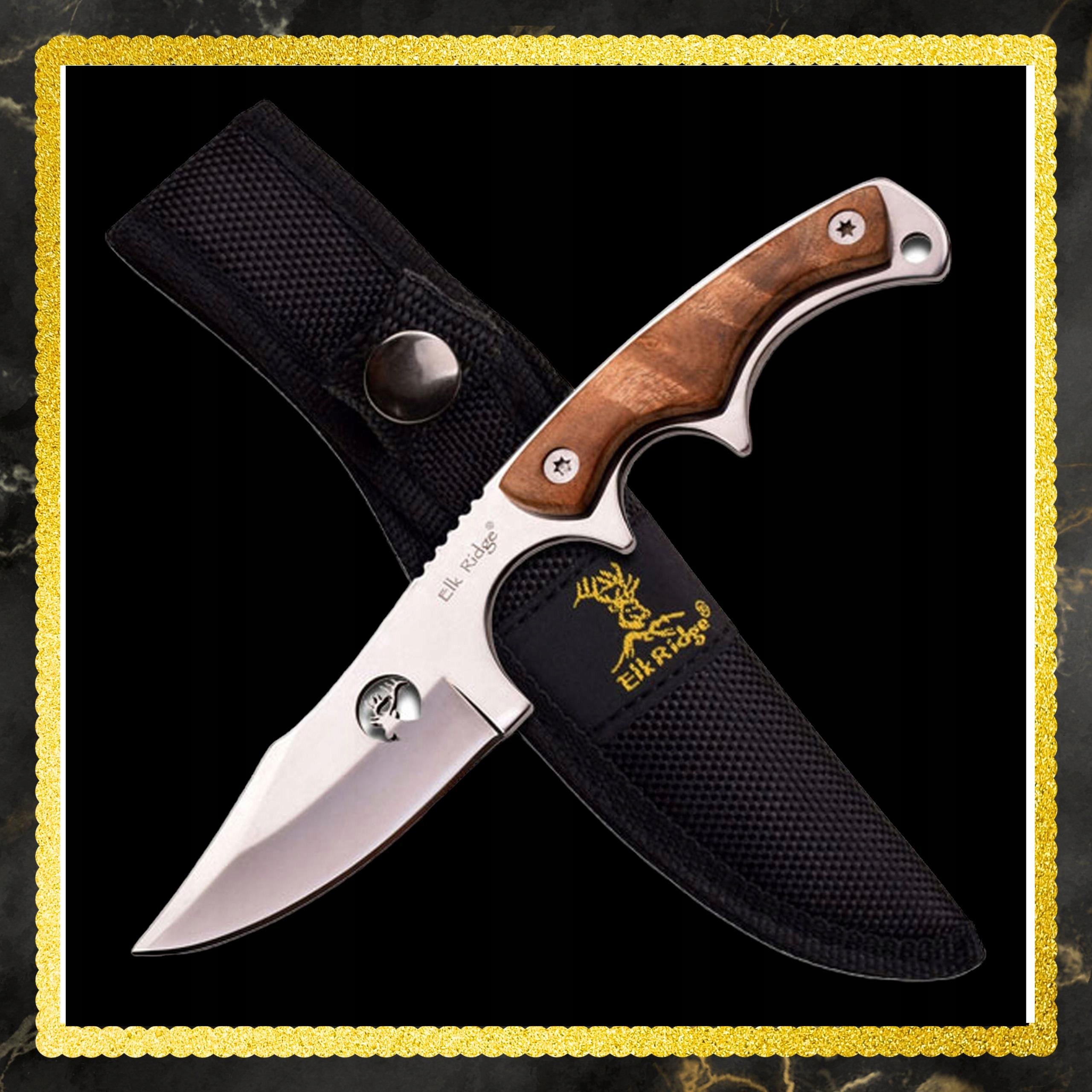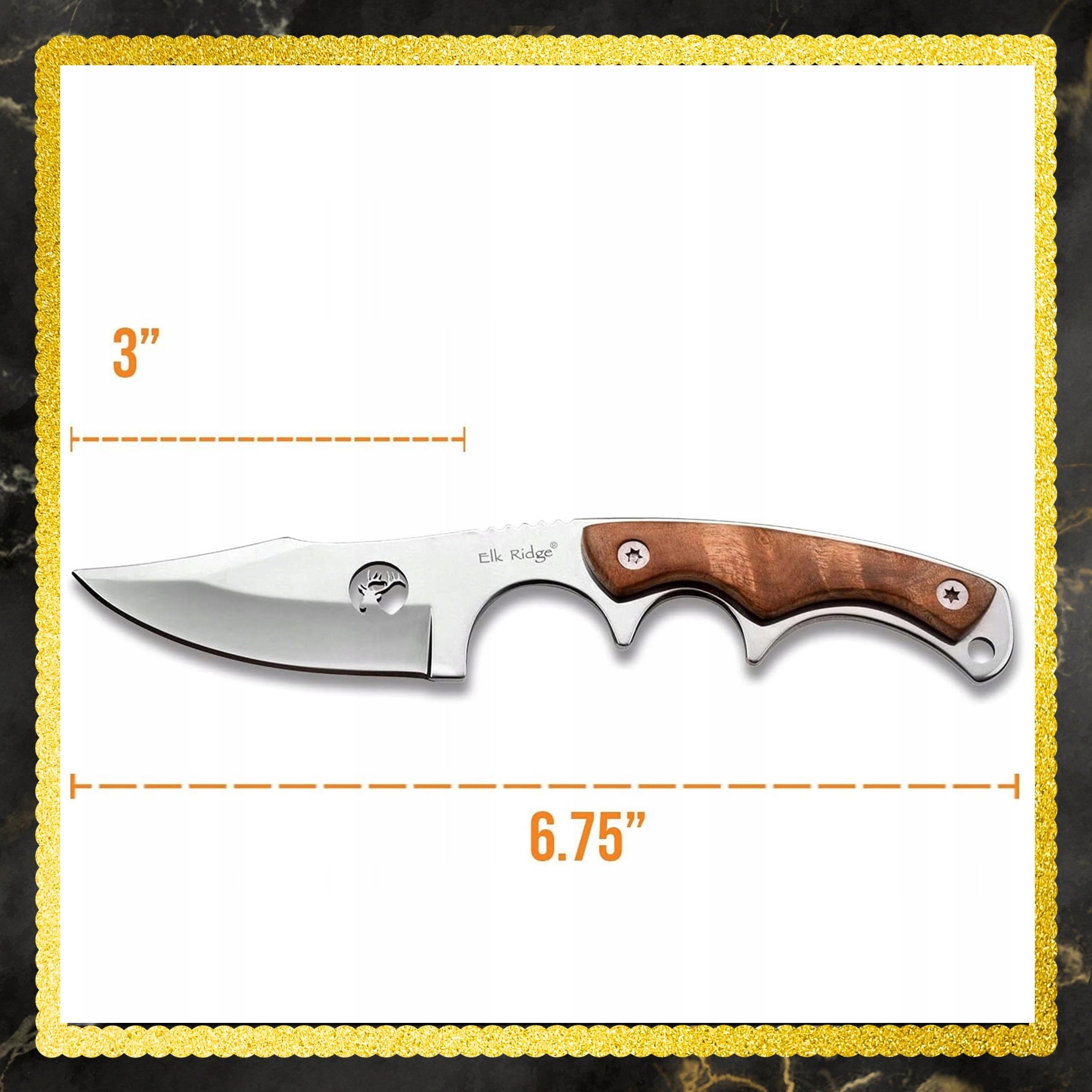 ❇ Нож Elk Ridge ER-534 закінчений обшивкою з дерева, що надає йому елегантного вигляду та забезпечує комфорт використання. Нож оснащений отвором для мотузки, що заважає йому загубитися. Набір також включає нейлонову кобуру, кріплений заклепкою, що збільшує безпеку та зручність носити ніж.