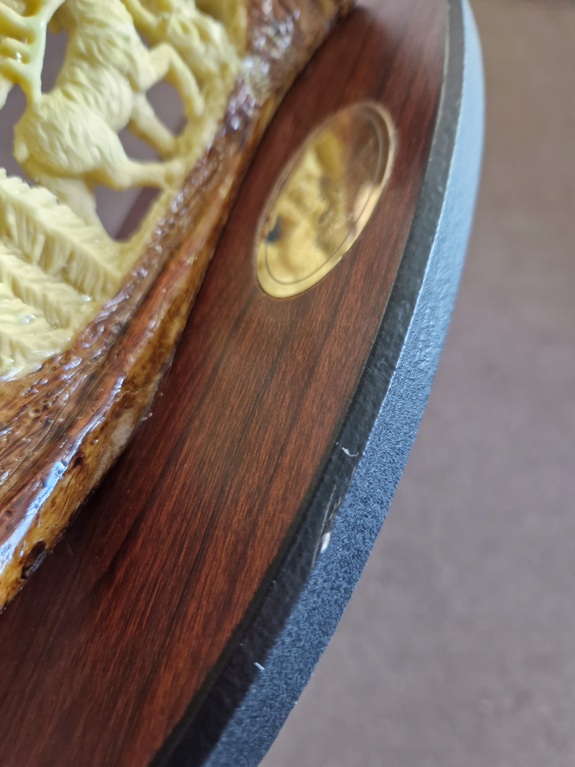 ❇ виготовлені з найвищої якості нержавіючої сталі, цей куточок не тільки красивий, але й практичний. Загальна довжина 38 см робить його вражаючим, а ручка імітаційних рогів додає справжність. 4 Весь спирається на гідну імітаційну позицію рогів, що є не лише практичним, але й є невід'ємною частиною композиції.