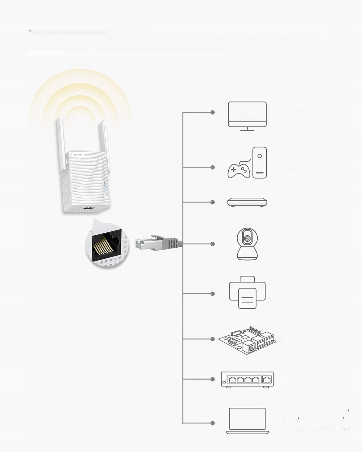 Міст WLAN BrosTrend 1200 Мбіт/с, бездротовий адаптер RJ45 для принтера, ПК, IP-камери, Playstation, Xbox (не для Magenta-TV)