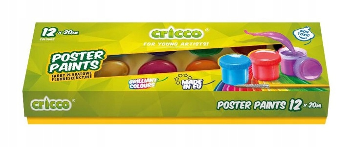 ✅Фарби для плакатів CRICCO 20 мл - набір із 12 кольорів.