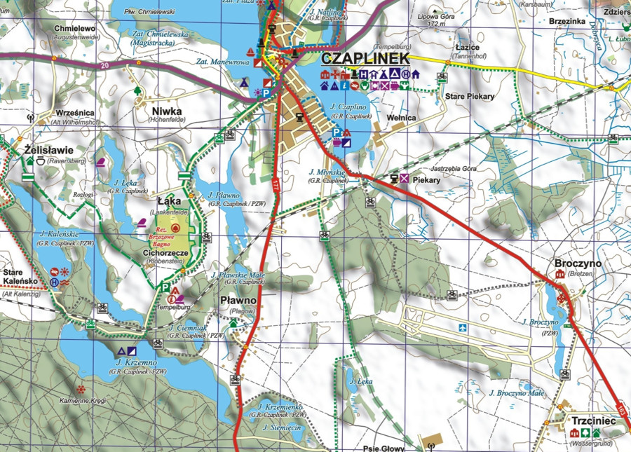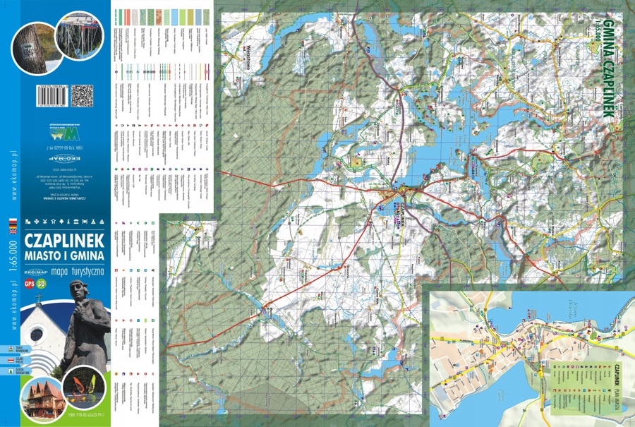 ТУРИСТИЧНА КАРТА МІСТА ТА МУНІЦИПІЛАТА ЧАПЛІНЕК 1:65 000 GPS 3D + ПЛАН МІСТА + БАТИМЕТРИКА ОЗЕР КРЖЕМНО, ДРАВСЬКО, ЖЕРДНО ТА ЧАПЛІНО