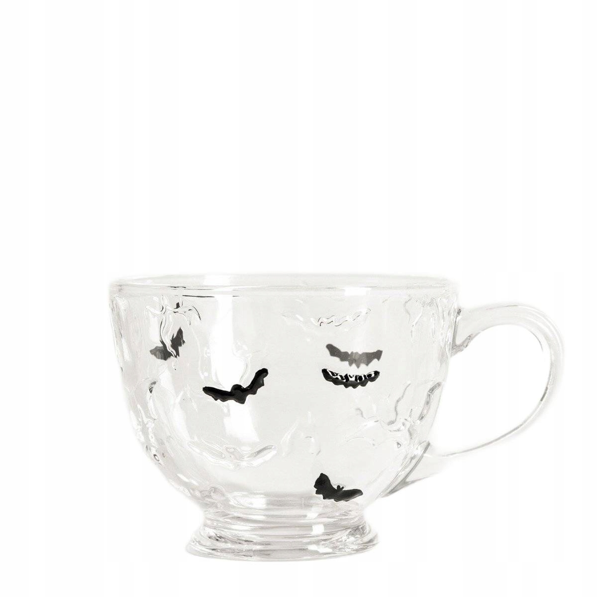 Стильна чашка GHOST TOWN - ідеальне доповнення до осіннього столу. Виготовлена з прозорого скла, прикрашена опуклим візерунком і чорними летючими мишками, вона радує оригінальним дизайном і ідеально вписується в атмосферу Хелловіна. Ідеально підходить для вечірнього чаю, гарбузового латте або гарячого шоколаду з зефіром.
