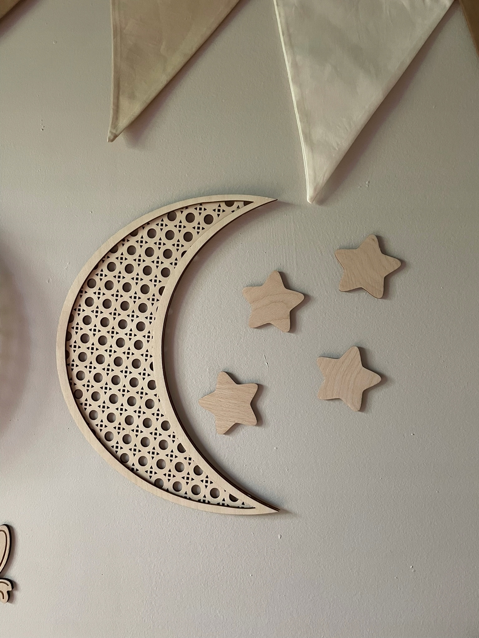 Місяць на стіні декорація з ротанга + дерев'яні зірки 3D RATAN ROOM