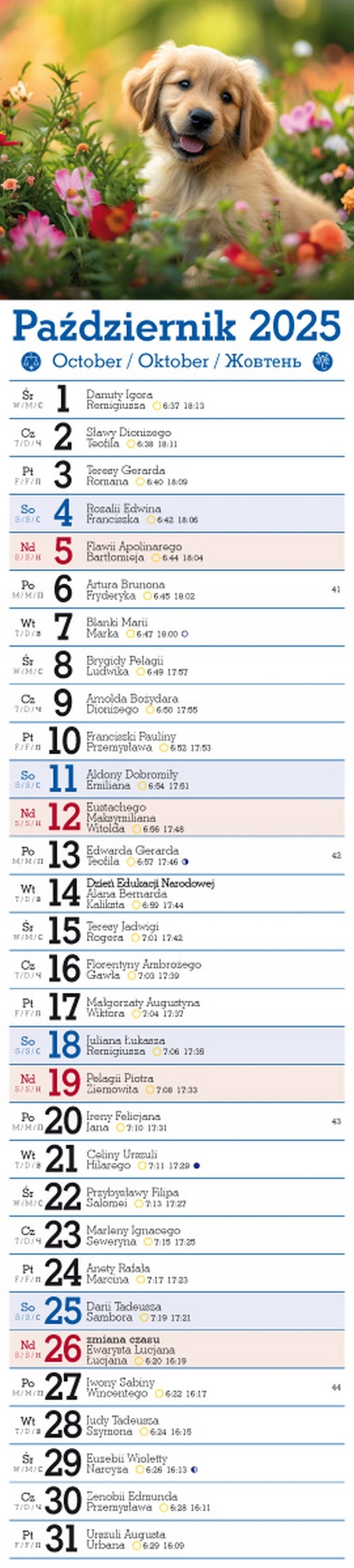 - магнітна стрічка на звороті календаря дозволяє прикріпити його, напр. холодильник