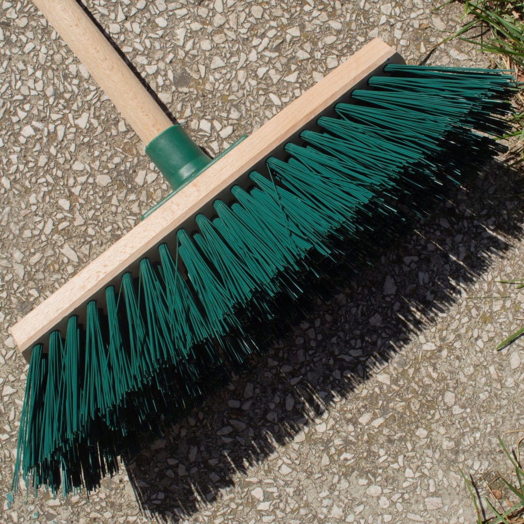 Мітла виготовлена з високоякісних матеріалів, стійких до погодних умов та інтенсивного використання. Надійне кріплення щетини означає, що щітка не втрачає своїх властивостей навіть після тривалого використання.