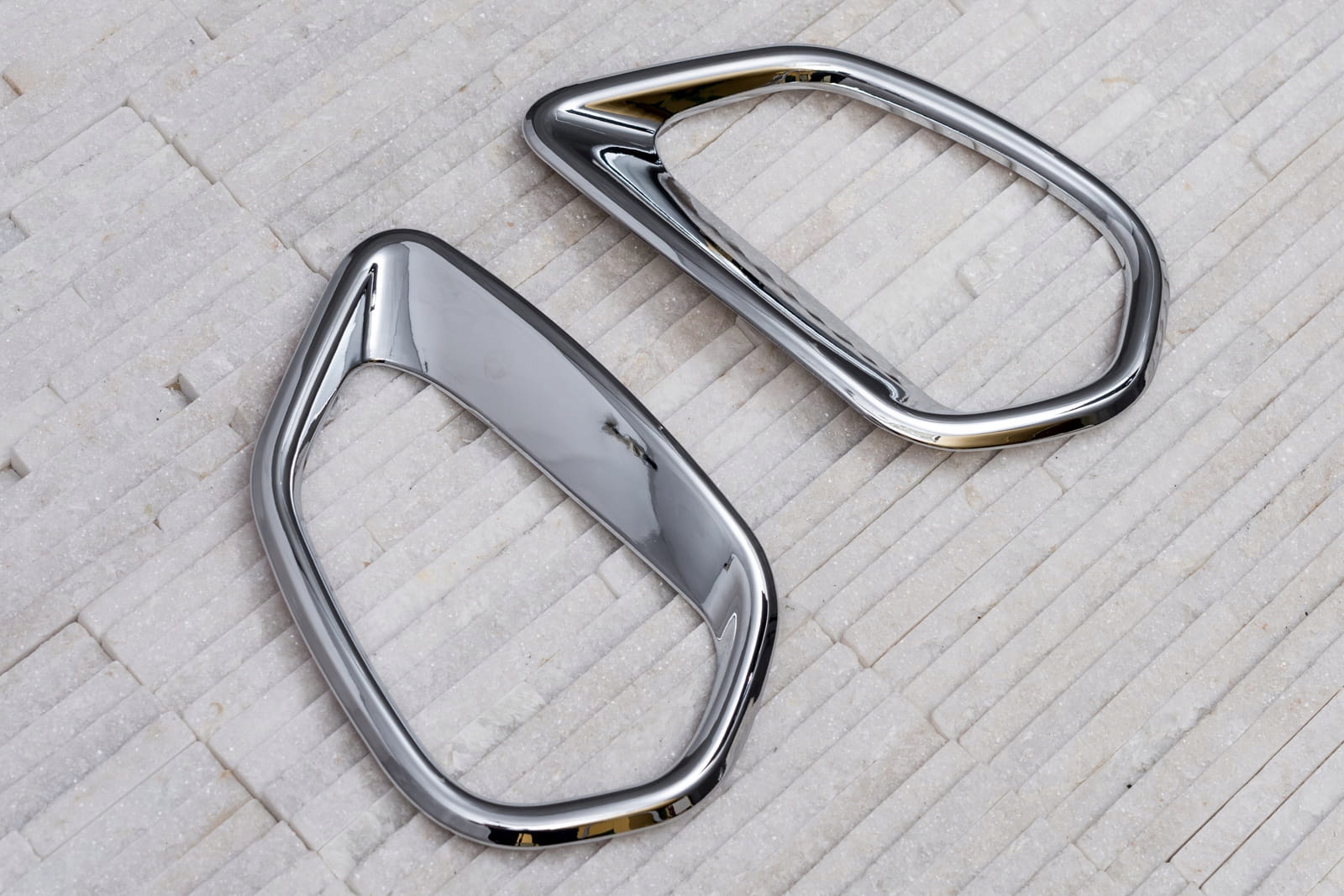 Стильні смуги підкреслюють форму рамки задніх протитуманних фар. Поєднання дзеркального блиску хромованої поверхні з динамічною, гострою лінією накладок надає фарам стильне обрамлення, яке ідеально відповідає характерному стилю OUTLANDER. Планки ідеально поєднуються з іншими елементами обробки MITSUBISHI, завдяки чому їх використання дозволяє досягти цілісного, виразного стилю автомобіля.