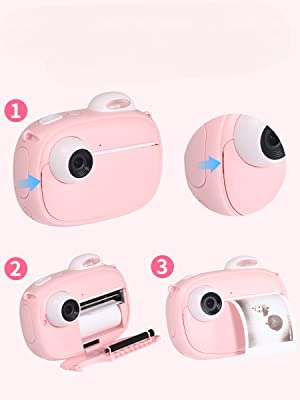 23 кумедні рамки та багатофункціональна камера для дітей: Камера для миттєвого друку для дітей має 23 милі кумедні рамки та 11 пейзажних фільтрів. Ця миттєва камера MINIBEAR постачається з MP3 і 3 іграми-головоломками (Snake, Pushbox, Tetris). Цифрова камера може регулювати щільність друку, сповільнену зйомку, яскравість екрана, звук кнопок, автоматичне вимикання та встановлення дати тощо.