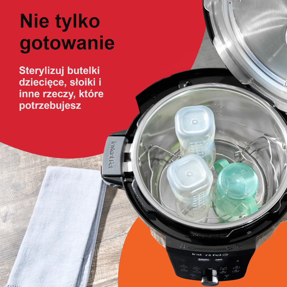 Легка стерилізація: Не тільки для приготування їжі - використовуйте миттєвий піт для швидкої стерилізації пляшок для немовлят, сосків та частин лактутора, що дає вам спокій всього за кілька хвилин. Ви також можете стерилізувати банки, окуляри та інші предмети домашнього вжитку.