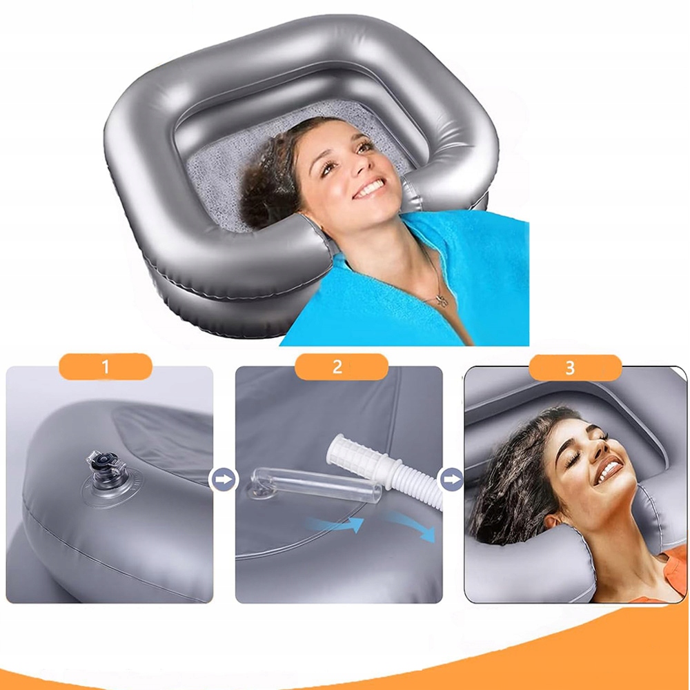 ✅✅nadmuchiwana umywalka do mycia włosów rozwiązuje trudności związane z myciem włosów przenośnym szamponem, mycie włosó na łóżku jest łatwe i i wygodne. Він дуже підходить для дітей, людей похилого віку тощо. Це не тільки полегшує миття волосся людям у поганому стані або після операції, але, перш за все, змушує їх почувати себе дуже комфортно. Срібний колір легко зберегти чистий і на відміну від білих умивальників, не всі вони матимуть бруд/плями.