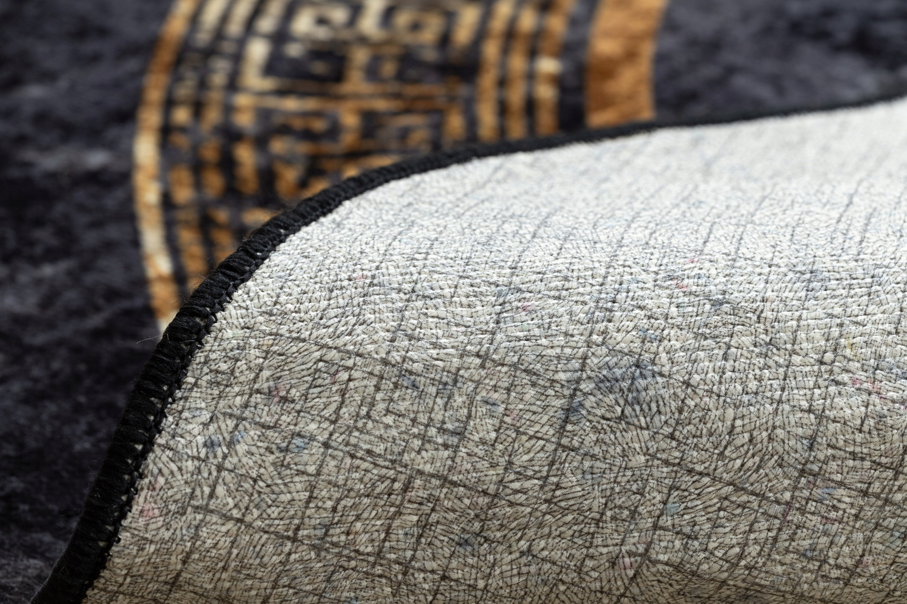 Миття килима Міро 120 круглої кола мармурового анти -слизу чорного / золота