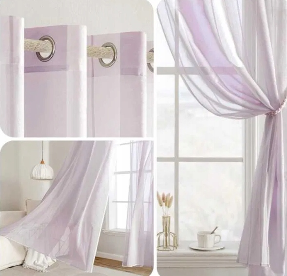Miulee Сучасні штори для вітальні з білими та лавандовими смужками 140 х 160 см