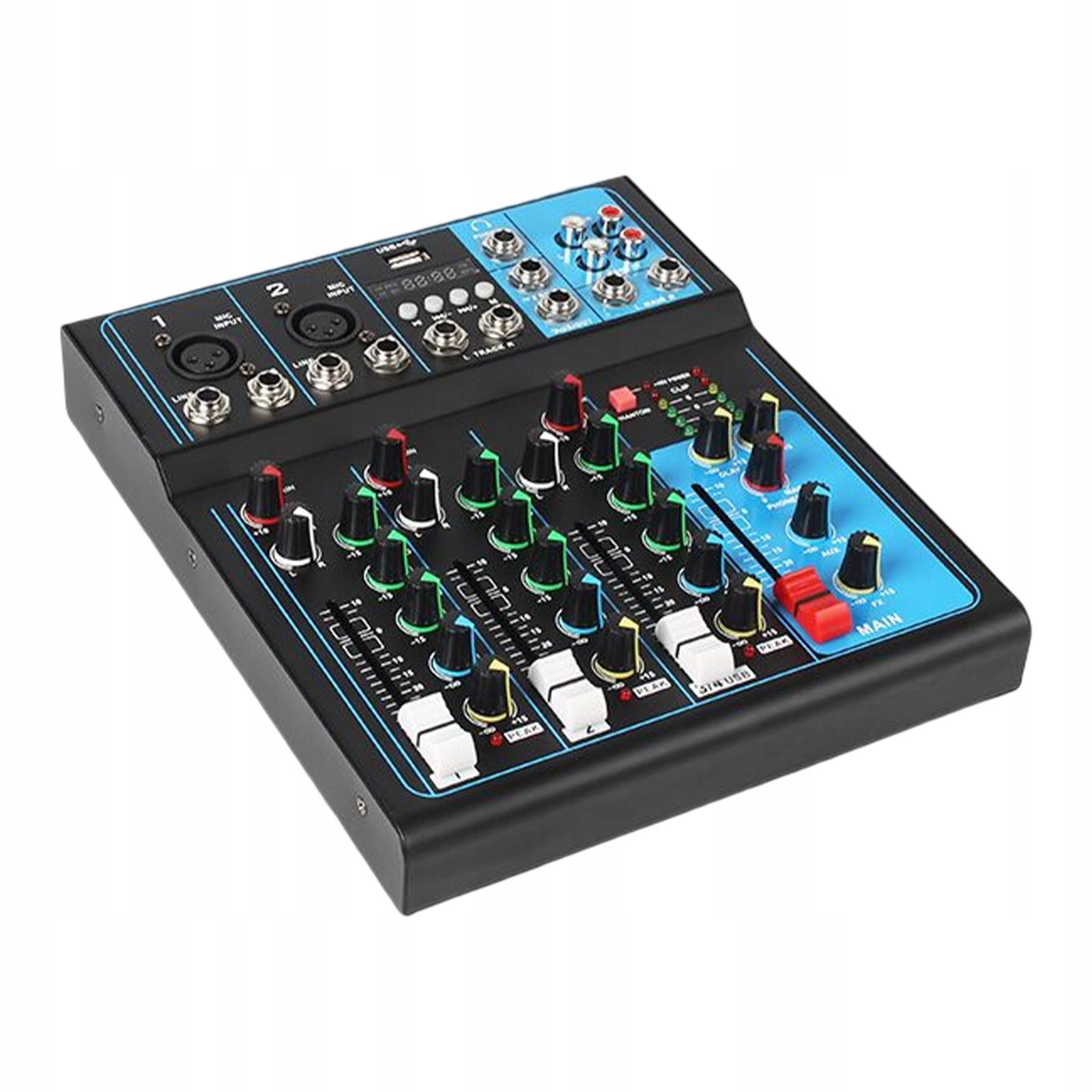 2-канальний мікрофон: звуковий мікшер має 2-канальний інтерфейс мікрофонного входу, точний інтерфейс, стабільну передачу, менше спотворень. Підтримує мобільний пристрій зберігання даних, ви можете зберігати пісні, вставляти відтворення