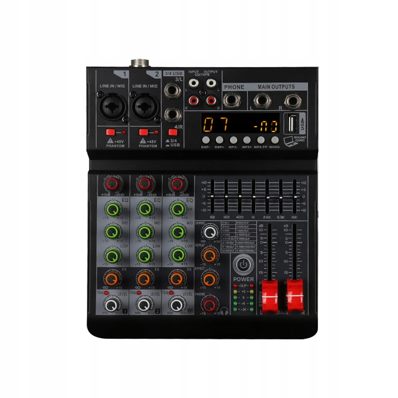 [Цифровий процесор]: 4-канальний аудіомікшер, вбудований процесор цифрових ефектів, швидка відповідь, професійний вихід має кращий ефект реверберації.
