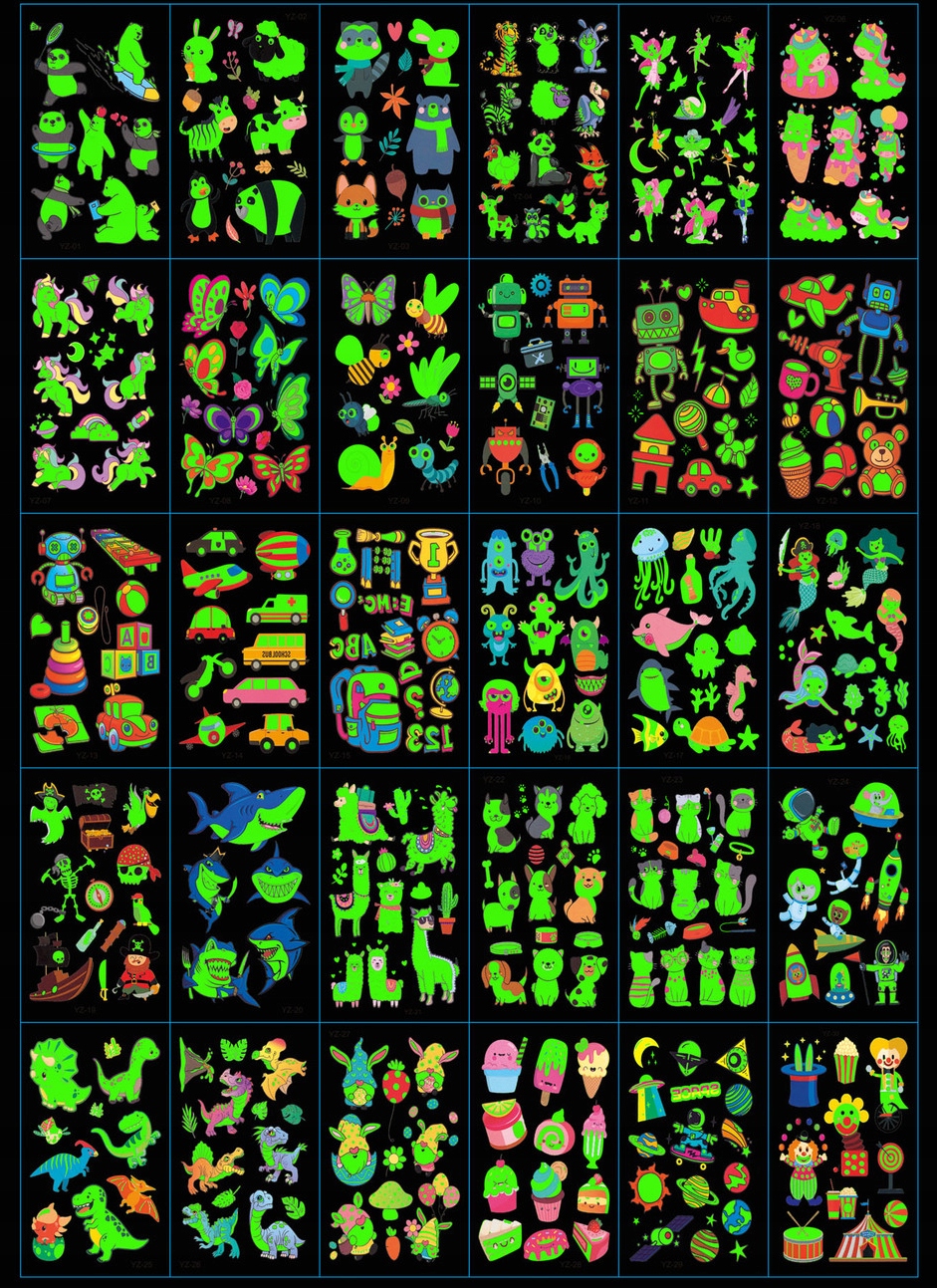 Миючі татуювання для дітей, що світяться вночі 30 аркушів 400 шт.