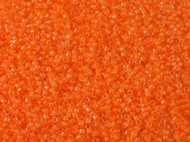 Японські кришталеві намистини Miyuki Delica найвищої якості, непрозорий яскраво-помаранчевий центр, циліндричні, діаметром 1,6 мм і довжиною 1,3 мм з великим отвором приблизно 0,8 мм.