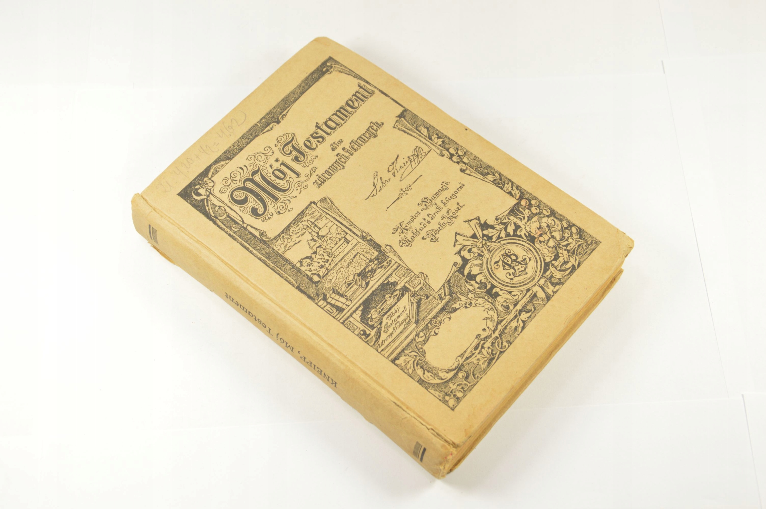 Оригінальне, цікаве, довоєнне видання Мій заповіт для здорового і хворого - Себастьян Кнайп. Видавництво «Книгарня Юзефа Косель», Кемптен 1920. Тверда палітурка, 343 сторінки, повна книга. Корінець опущений, зшивання потребує вдосконалення, книга зв’язна.